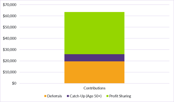 Adding a cash balance plan does not affect Robert’s 2020 deferral of $26,000, but here is where that distinction we mentioned earlier becomes important. If the sum of all contributions made by the company (profit sharing and cash balance, in this case) exceeds 31% of total plan compensation for a given tax year, then the maximum tax-deductible profit sharing contribution is limited to 6% of plan compensation.